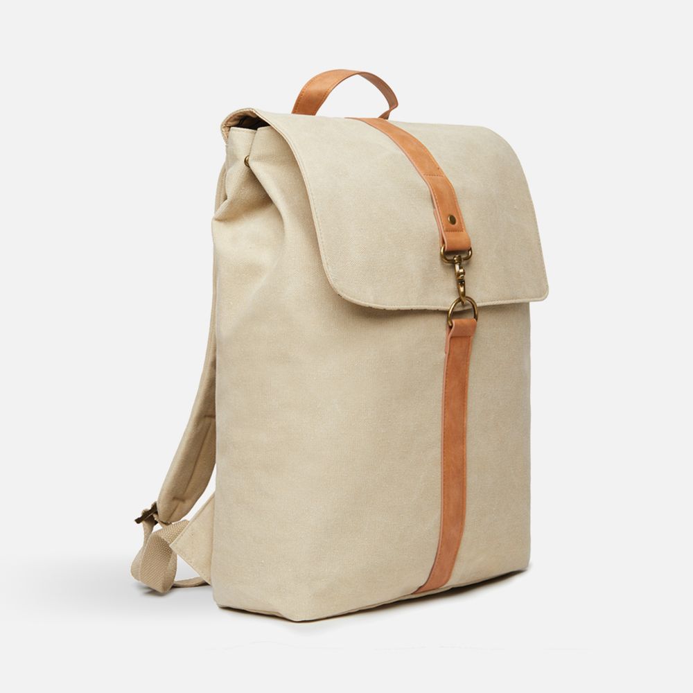 Рюкзак Bosler изготовлен из переработанного канваса: он не только выглядит модно, но и демонстрирует заботу об окружающей среде. Рюкзак оснащен отделением для ноутбука и привлекает внимание контрастными деталями из полиуретана и латунной фурнитурой.