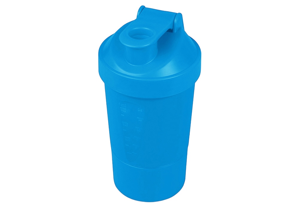 Шейкер для спортивного питания - это один из необходимых аксессуаров для спортсменов и людей, ведущих активный образ жизни. В нем можно приготовить протеиновый коктейль или фруктовый напиток. Шейкер классической формы, он удобно лежит в руке, к донышку прикручивается емкость для смешивания (таблетница), в которой можно хранить спортивные добавки: протеиновый порошок, витамины и другие концентраты. Внутри колбы имеется пластиковая сетка, чтобы процеживать спортивный напиток, а также металлический размешиватель, который растворяет порошок в напитке без комочков. Объем - 400мл. Шейкер изготовлен из пищевого пластика, он герметичен и легко моется. Шейкер имеет приятное на ощупь матовое покрытие, но подверженное незначительным дефектам (царапинам). Шейкер с нанесением - это классный и полезный спортивный подарок для коллеги, руководителя и сотрудников компании.