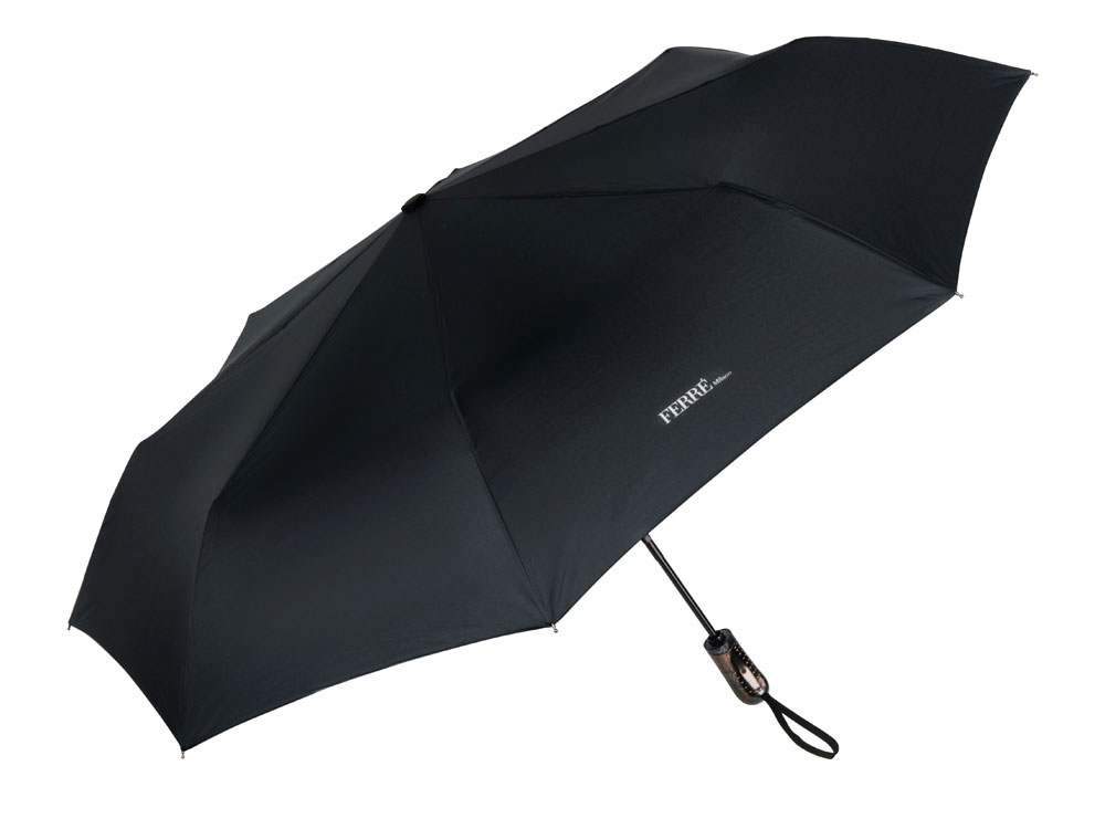 Эксклюзивный автоматически открывающийся и закрывающийся зонт в три сложения. Черная металлическая трость, стекловолоконные спицы и пластиковая прорезиненная ручка. Предлагается в чехле под цвет зонта. Длина зонта в сложенном виде: 31 см. Эпонж полиэстер.