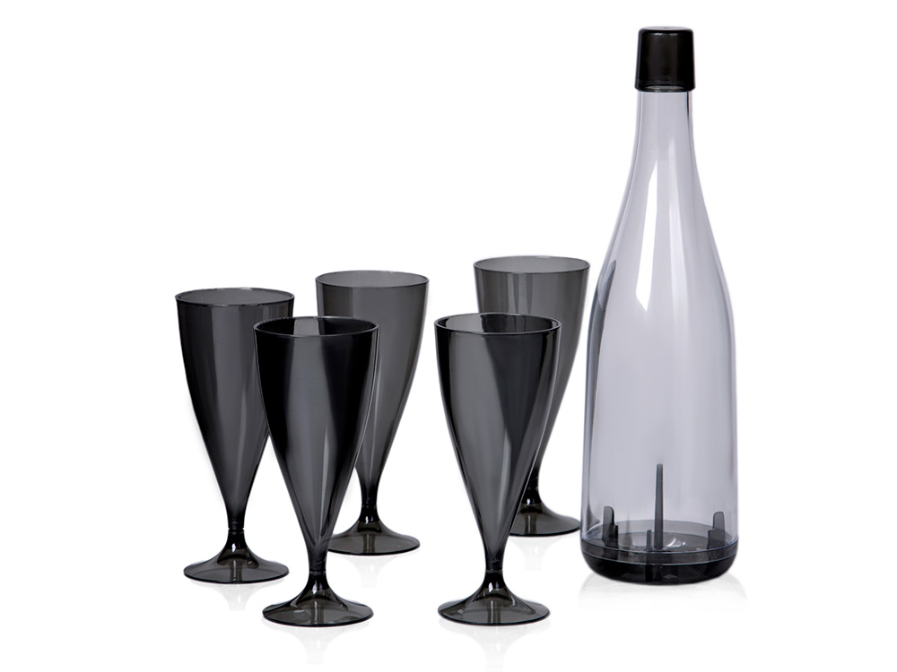 Бокалы упакованы в пластиковую бутылку со съёмным дном, которую удобно брать с собой на пикники.