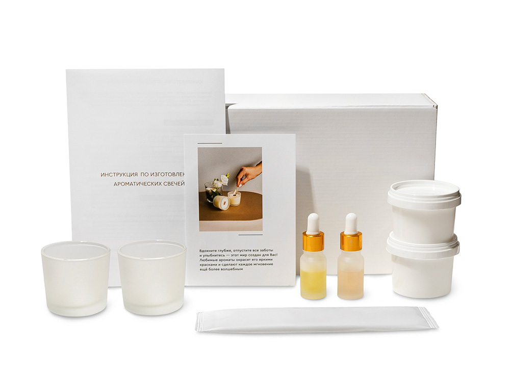 Уникальный набор для изготовления ароматических свечей станет приятным подарком и погрузит в увлекательный процесс. Набор выполнен в подарочной коробке с ложементом, в него входят все необходимые компоненты и подробная инструкция. Откройте для себя удивительный мир ароматов с Lights of Moscow! Вы сможете создать две невероятные композиции, которые точно понравятся Вам и Вашим близким! Условия хранения: — Свечи: +18…+24 °C, вдали от источников тепла, сквозняков и прямых солнечных лучей. — Рекомендуемая влажность — не более 50%. — Избегайте длительного воздействия яркого света. В комплекте: Подарочная брендированная коробка с ложементом - 1 шт. Стакан стеклянный матовый с тиснением логотипа LM 100 мл - 2 шт. Контейнер с соевым воском – 2 шт. Флакон стеклянный матовый c тиснением логотипа LM с ароматической отдушкой – 2 шт. Деревянный фитиль с держателем – 1 шт. Хлопковый фитиль с держателем - 1 шт. Наклейка для крепления фитиля - 2 шт. Палочка для перемешивания - 2 шт. Салфетка - 1 шт. Перчатка - 1 шт. Открытка - 1 шт. Инструкция по изготовлению ароматических свечей – 1 шт.