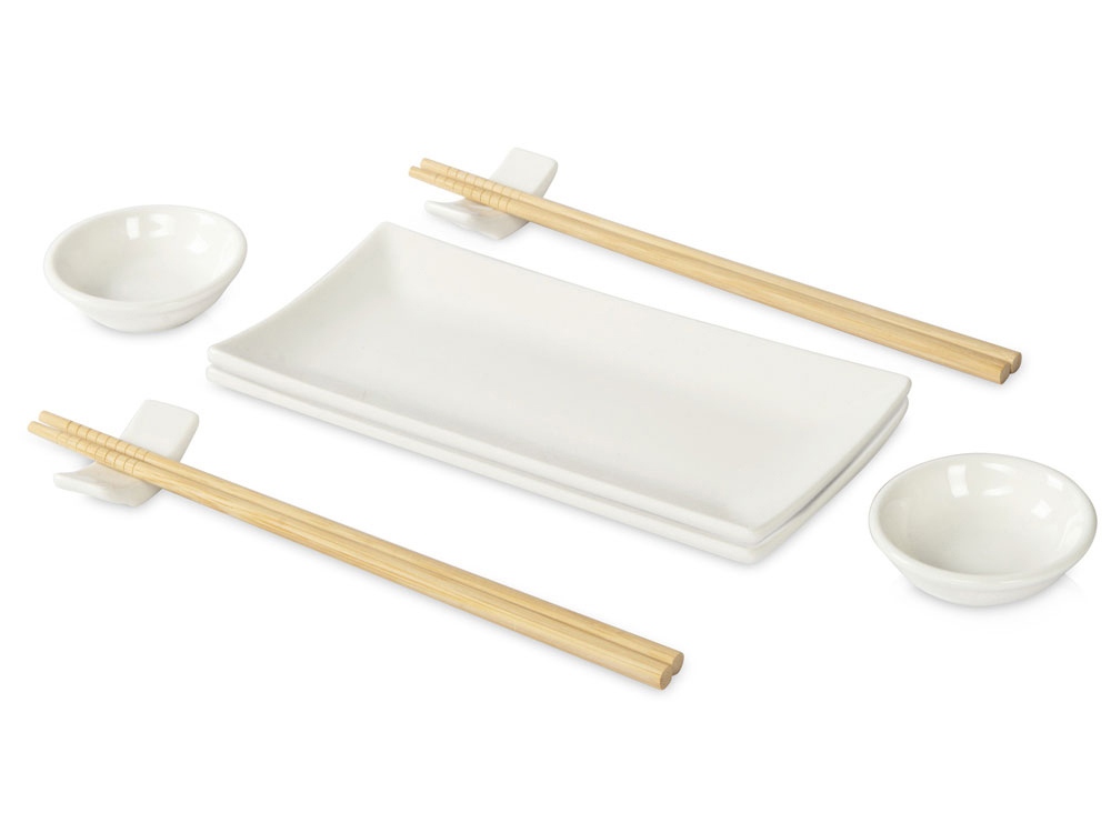 Комплектность: блюдце для сервировки- 2шт., соусник- 2 шт., палочки для суши- 2 комплекта, подставка для палочек- 2 шт.
