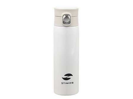 СВЕРХЛЕГКАЯ ТЕРМОКРУЖКА STINGER 0,42 л НАЗНАЧЕНИЕ Термокружка STINGER предназначена для употребления пищевых жидкостей (воды, напитков) как в горячем, так и в холодном состоянии. ХАРАКТЕРИСТИКИ Объём: 0,42 л Вес: 0,231 кг Время сохранения тепла: 6 часов Время сохранения холода: 6 часов Метод изоляции: вакуум Размеры • Высота – 21,9 см • Диаметр горлышка – 4,7 см • Диаметр дна – 6,5 см • Ширина (с учетом кольца и фиксатора) – 7,5 см Тип крышки: винтовая крышка-пробка с откидным механизмом Цвет: синий Материалы • Корпус: медицинская нержавеющая сталь, класс AISI 316 Stainless Steel • Колба: медицинская нержавеющая сталь, класс AISI 316 Stainless Steel • Крышка: пищевой пластик, не содержит бисфенол А (BPA free) • Прокладки-уплотнители: пищевой силикон ОСОБЕННОСТИ • Двойные стенки с вакуумной изоляцией отлично сохраняют температуру долгое время, гарантируют безопасность прикосновения к очень горячим и холодным напиткам. • Внешний и внутренний корпус из прочной медицинской нержавеющей стали AISI 316. • Пластиковые детали не содержат Бисфенол А (BPA FREE). • Герметичная крышка и дополнительный фиксатор защищают от случайного открывания и проливания жидкости. • Конструкция крышки позволяет открывать термокружку в одно касание и одной рукой – достаточно нажать на кнопку, верхняя крышка откинется на 180 градусов и автоматически зафиксируется в открытом положении. • Силиконовая накладка на дне предотвращает случайное скольжение и опрокидывание. • Ситечко для заварки чая или кофе. • Кольцо для удобства переноски. • Подходит под все виды подстаканников.