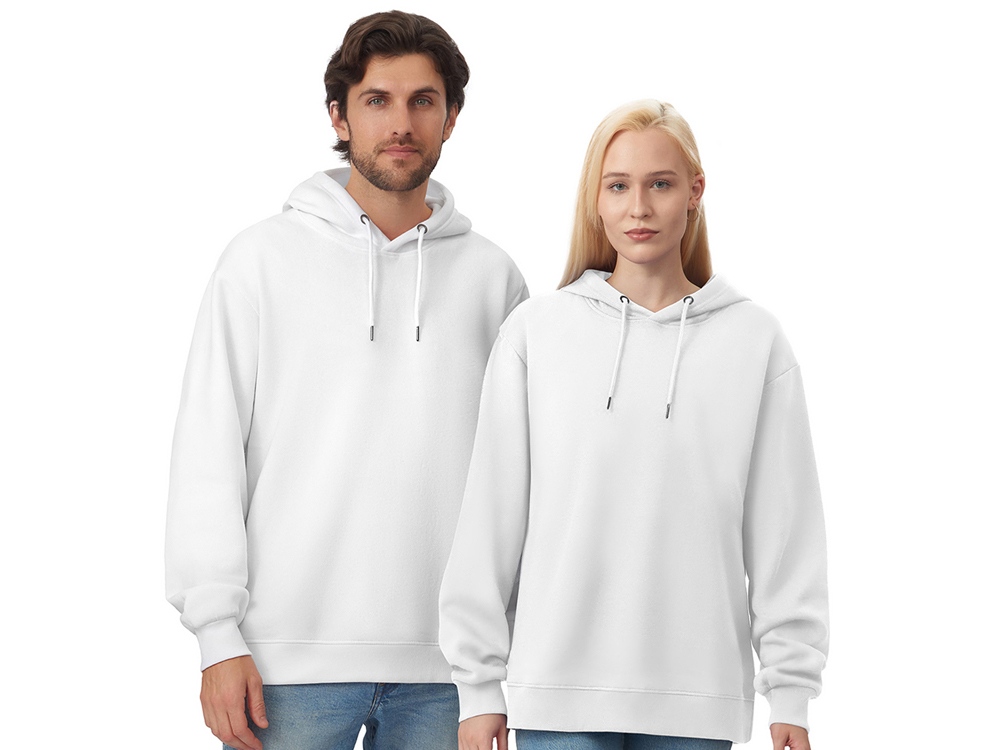 Толстовка с капюшоном из мягкого флиса из смеси хлопка и полиэстера. Модель комфортной и актуальной посадки оверсайз отлично подходит для обычной жизни и в качестве промо мерча. - оверсайз посадка - удобный капюшон на подкладке -мягкое и уютное полотно из смеси хлопка и полиэстеры - Низ и рукава обработаны манжетами из риба 2х2 и дополнительно отстрочены для укрепления - увеличенная зона для нанесения из-за отсутствия кармана