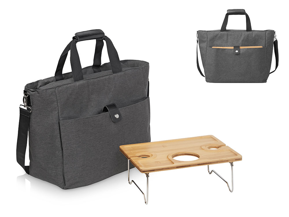 Уникальное предложение для тех, кто собрался на пикник, пляж или дачу! Большую вместительную сумку-холодильник удобно использоваться для транспортировки охлаждённых или подогретых продуктов и бутылок с разнообразными напитками. Внутри по бокам сумки расположены 2 изотермических кармана для высоких бутылок. Основное отделение на молнии. 2 ручки с фиксатором на липучке для удобства носить в руке. Большой наружный карман на кнопке. Съемная лямка на плечо регулируется по длине. Выгодный бонус - штопор с бамбуковой ручкой в комплекте. К сумке в наборе идет складной столик из натурального бамбука. Изготовленный из экологически чистого и долговечного бамбука, этот столик не только красив, но и практичен. Его легкие и прочные металлические ножки складываются одним движением, обеспечивая компактное хранение и удобную транспортировку. Возьмите его с собой на пикник, на пляж, на дачу или используйте как стильный приставной столик дома – он везде будет к месту! Важные особенности: - Элегантный дизайн из натурального бамбука: Придаст особый шарм любой обстановке. - Надежная фиксация напитков: Два углубления для бокалов и центральное отверстие для бутылки – забудьте о пролитых напитках! - Компактность и мобильность: Легко складывается и не занимает много места при хранении и транспортировке. - Прочность и долговечность: Натуральный бамбук и качественные металлические ножки прослужат вам долго. - Идеально для романтических вечеров, пикников и уютных посиделок.