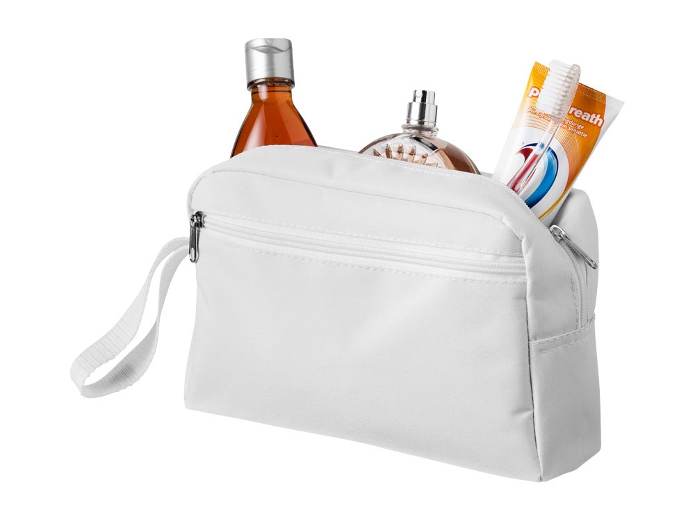 Вместительная косметичка с петлей, основным отделением на молнии и передним карманом на молнии из полиэстера.