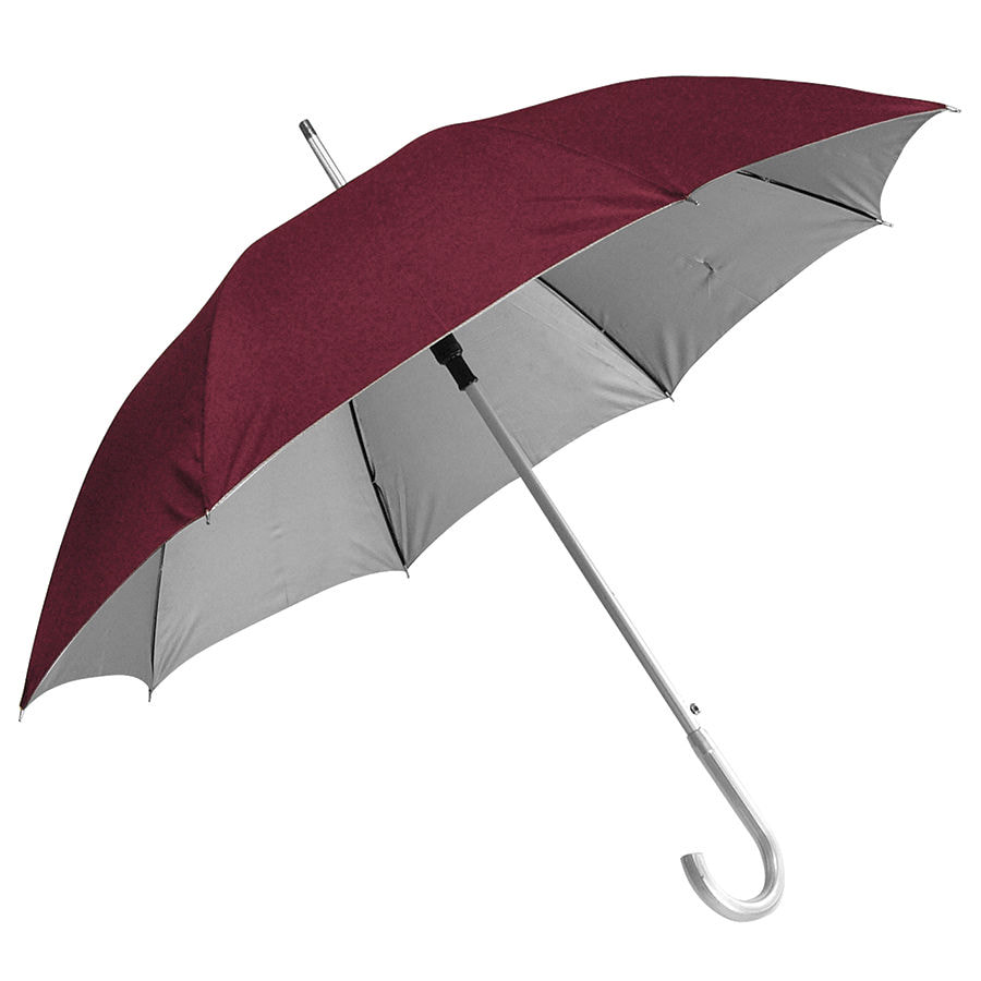 Зонт-трость с пластиковой ручкой "под алюминий" "Silver", полуавтомат; бордовый с серебром; D=103 cм